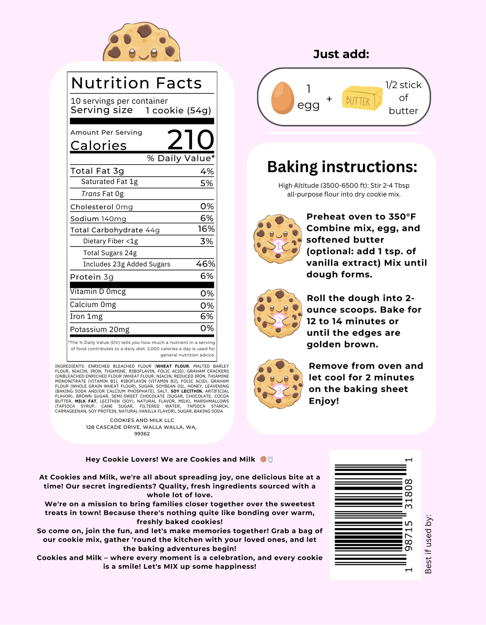 A fan favorite delicious graham cracker base with chocolate chips and fluffy marshmallows. Ready in three simple steps you can enjoy a fresh baked S'mores dessert cookie with family and friends!